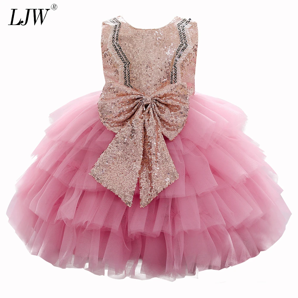 طفل المعمودية الترتر القوس طفلة فستان عيد الميلاد 1 سنة حفلة عيد ميلاد الزفاف فستان طفل